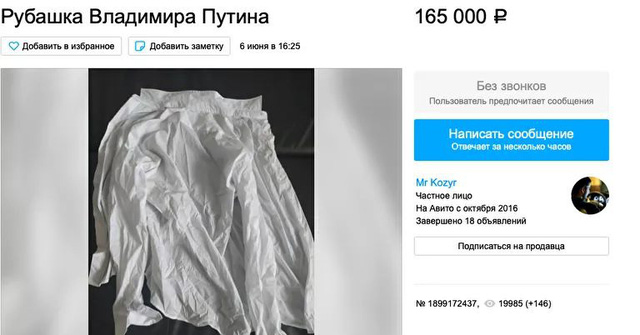 Trang web phổ biến dành cho các thông báo riêng tư đã đăng tin rao bán chiếc áo sơ mi của Tổng thống Putin, được cho là bị bỏ quên tại khách sạn Sheraton ở thành phố Nizhny Novgorod.