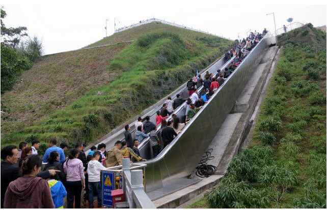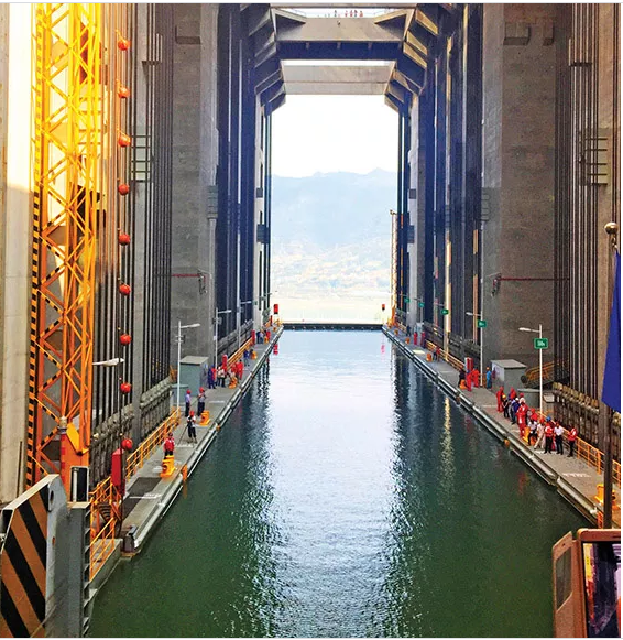 Khách được di chuyển bằng thang máy cuốn lên trên đập Tam Hiệp.