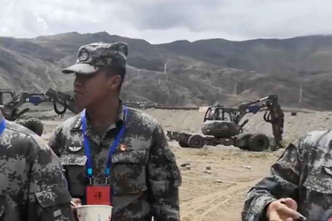Máy xúc "chân nhện" xuất hiện trong đoạn video của quân đội Trung Quốc ở gần biên giới đang tranh chấp với Ấn Độ. Ảnh: Handout.