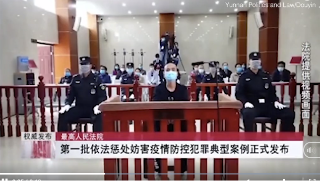 Công dân Trung Quốc đầu tiên bị xử tử vì phạm tội liên quan tới đại dịch Covid-19. Theo Tòa án nhân dân tối cao Trung Quốc đây là trường hợp đầu tiên "đặc biệt tệ hại" và tác động của hành vi phạm tội tới xã hội là "vô cùng nghiêm trọng". (Toàn những động từ mạnh)
