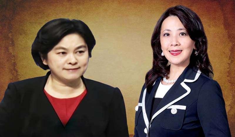 Hoa Xuân Oánh – người phát ngôn của Bộ Ngoại giao Đảng Cộng sản Trung Quốc và Âu Giang An – người phát ngôn Bộ Ngoại giao Đài Loan. (Ảnh: TH)