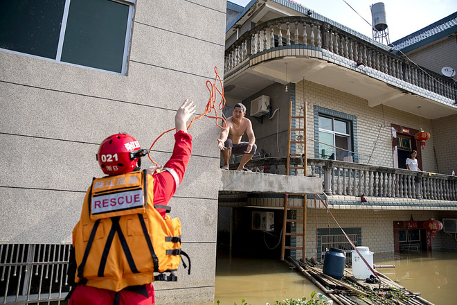 Nước đã ngập quá tầng 1, nhưng bà Zhang Meifeng, 67 tuổi, không muốn rời khỏi ngôi nhà của mình. Đây không phải lần đầu tiên bà Zhang trải qua một trận lũ, nhưng đây là ngôi nhà mà chồng và con trai bà đã phải dành dụm suốt 20 năm mới xây được. Họ đều là lao động nhập cư, phần lớn thời gian đều làm việc ở xa nhà: chồng bà Zhang làm nghề mộc ở tỉnh Chiết Giang, và con trai bà làm thu ngân ở Hải Nam.