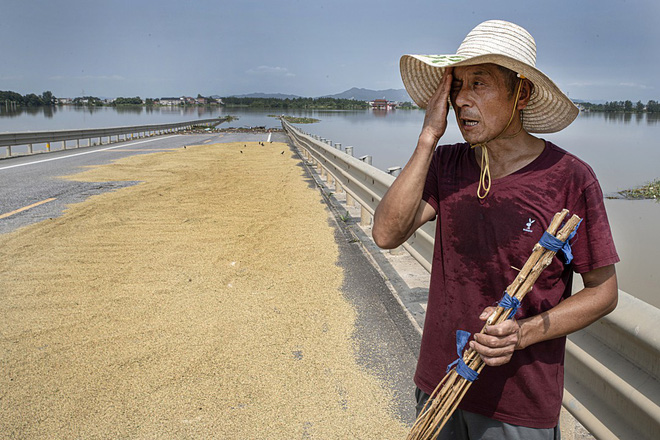 Ở không xa so với ngôi làng của bà Zhang, một người nông dân họ Sheng đang vất vả xử lý số thóc bị ngập nước. 330 mẫu ruộng của ông Sheng đã bị ngập nước, trở thành một vũng bùn lầy lớn. Ông Sheng cho biết, một con đê tại đây lẽ ra phải được gia cố từ năm ngoái, nhưng việc này mới chỉ được hoàn thành một nửa.