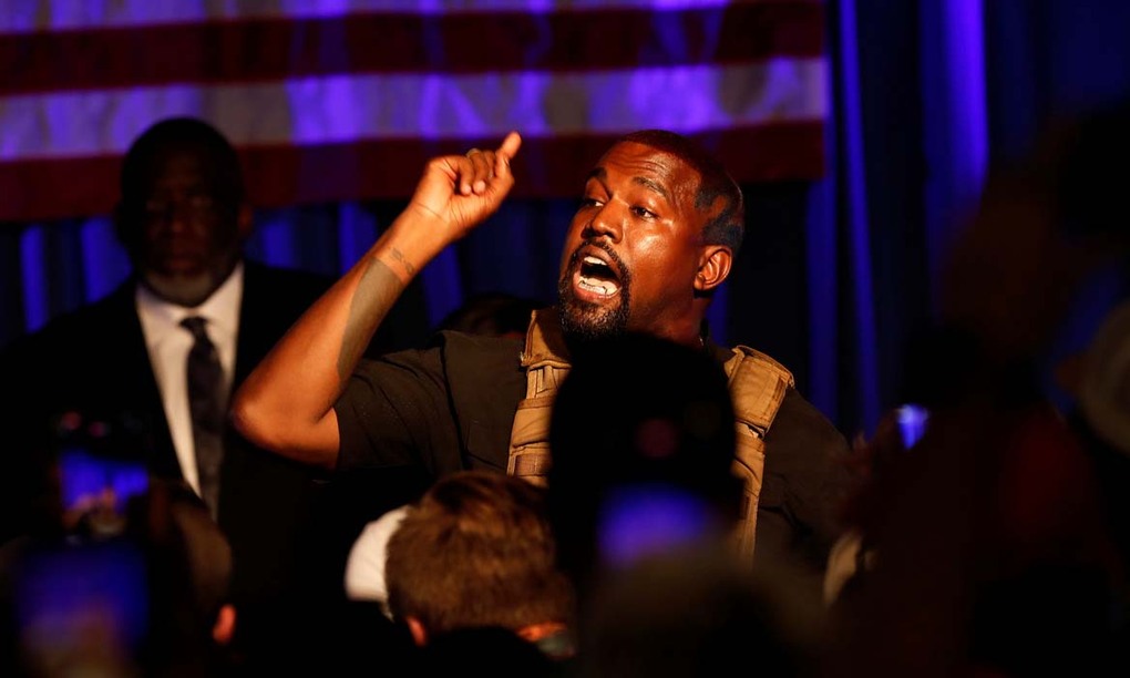 Tại buổi vận động tranh cử tổng thống đầu tiên, rapper Kanye West nhắc tới một số vấn đề, nhưng lại gây cảm giác anh không hứng thú với chính trị mà tập trung sự chú ý vào bản thân.