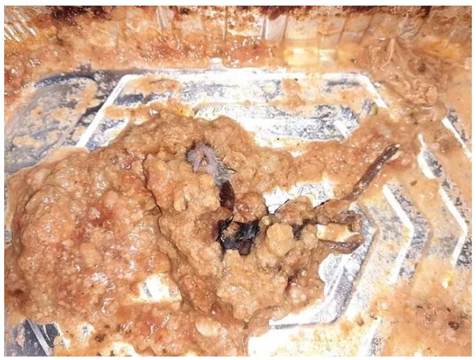 Thoạt đầu, bà đã nghĩ rằng mình ăn phải một miếng xương, nhưng sau khi kiểm tra, bà kinh hoàng phát hiện ra đó là một con chuột chết.