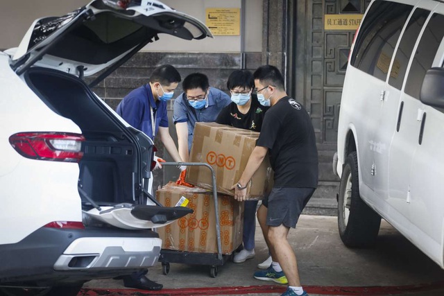Nhân viên lãnh sự quán Trung Quốc dọn đồ đi. (Ảnh: Houston Chronicle)