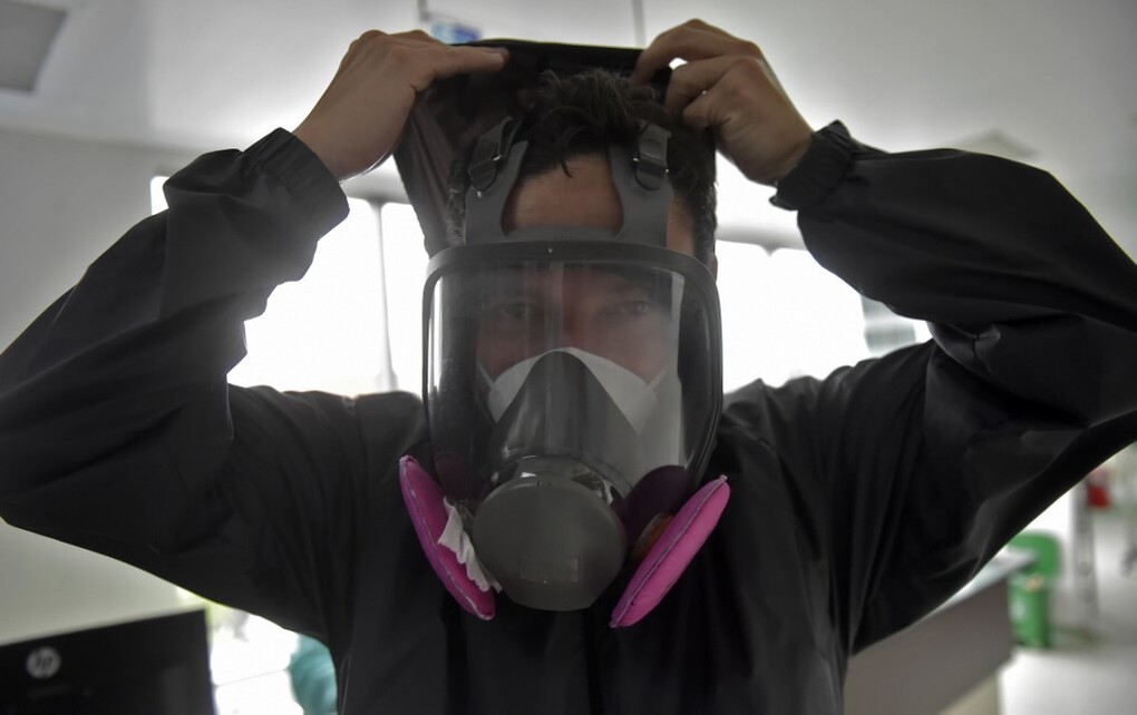 Bác sĩ đeo đồ bảo hộ ở Colombia ngày 24/7. Ảnh: AFP.