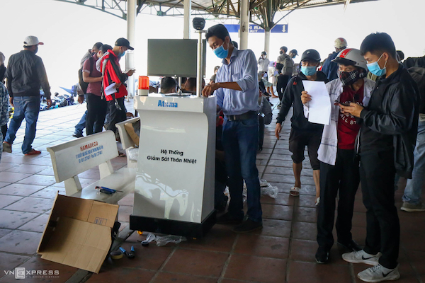 Máy đo thân nhiệt được huy động đến trạm kiểm soát số 5 do người dân tập trung quá đông.