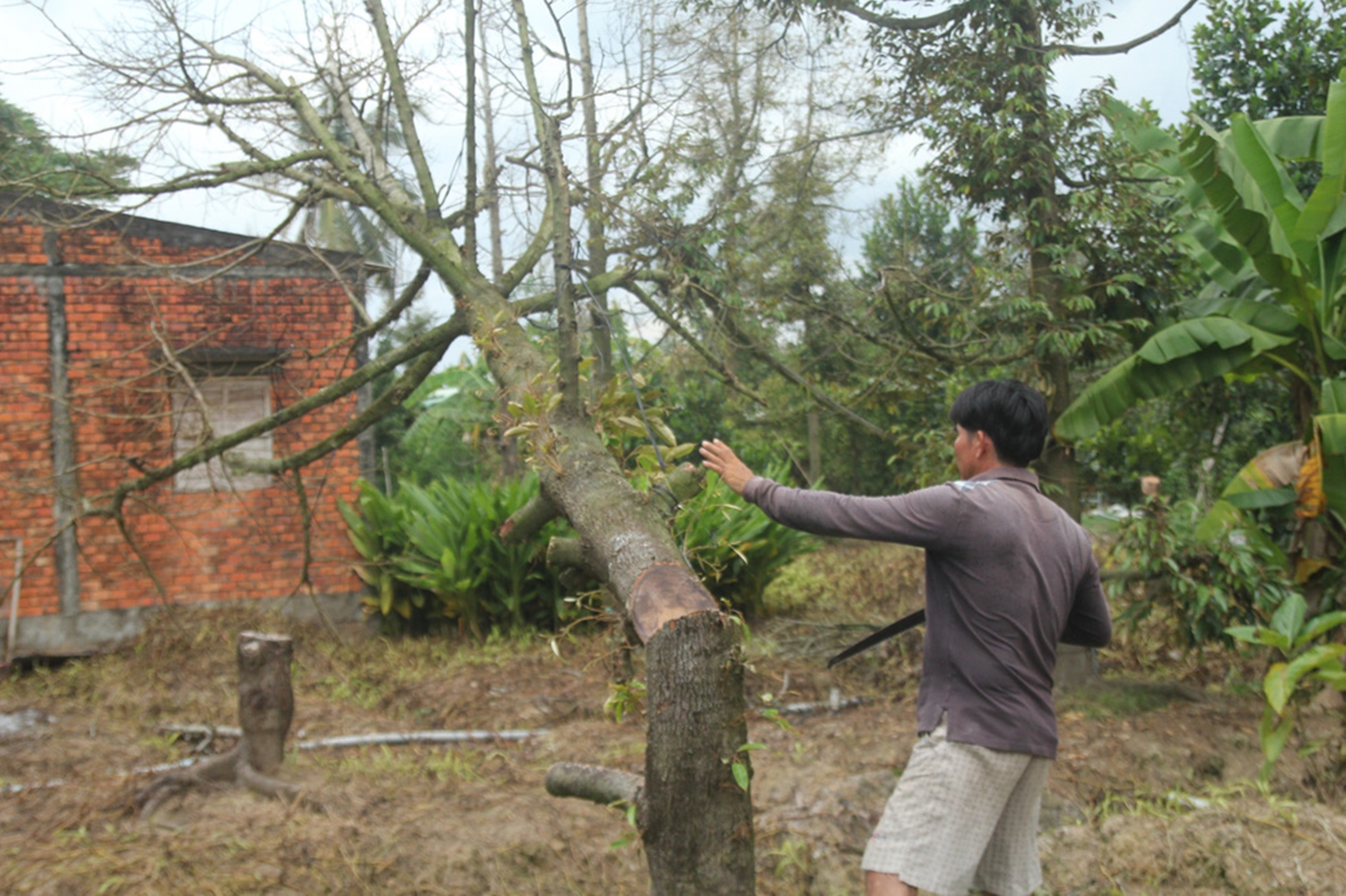 Hầu hết các nhà vườn tại tỉnh Tiền Giang không có nhiều sự lựa chọn sau đợt hạn mặn nên vẫn cố giữ lấy cây sầu riêng. Thay vì trồng mới mất rất nhiều thời gian để cho trái, họ chọn cách cưa cây để dưỡng tược mới với hi vọng nhanh phục hồi vườn sầu riêng của mình.