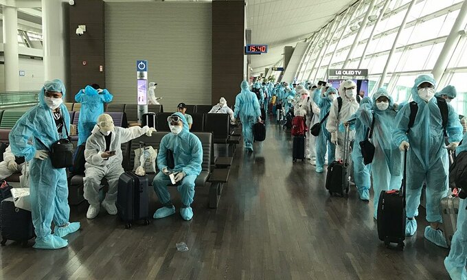 230 công dân Việt Nam mắc kẹt ở Hàn Quốc do Covid-19 về nước trên chuyến bay hạ cánh ở sân bay quốc tế Nội bài hôm nay.