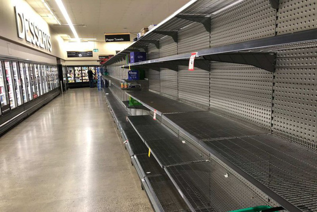 Tâm lý mua tích trữ của người dân đã khiến nhiều kệ hàng siêu thị tại Australia trống trơn. Ảnh: ABC.