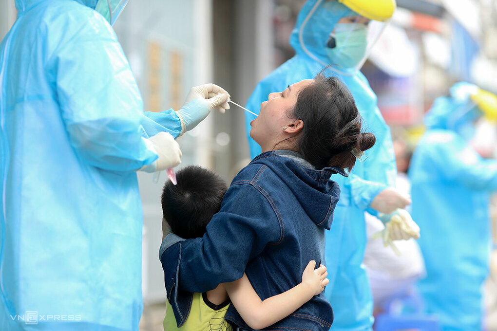 Nhân viên y tế lấy mẫu xét nghiệm tại cộng đồng cho người dân. Ảnh: Nguyễn Đông.