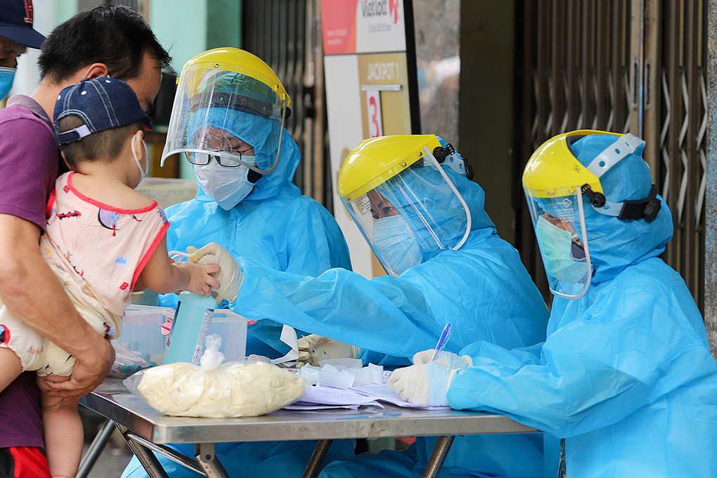 Nhân viên y tế lấy mẫu xét nghiệm nCoV tại Đà Nẵng. Ảnh: Nguyễn Đông.
