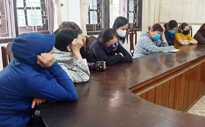 9 đối tượng là nữ gồm: Nguyễn Thị Hoa (1957), Trương Thị Hải (1963), Trần Thị Hương (1961), Nguyễn Thị Thức (1973), Nguyễn Thị Thủy (1973), Lê Thị Bé (1984), Võ Thị Bé (1981), Nguyễn Thị Bình (1983) đều trú tại phường Nghi Tân, thị xã Cửa Lò và Võ Thị Hằng (1977, trú tại huyện Nghi Lộc).