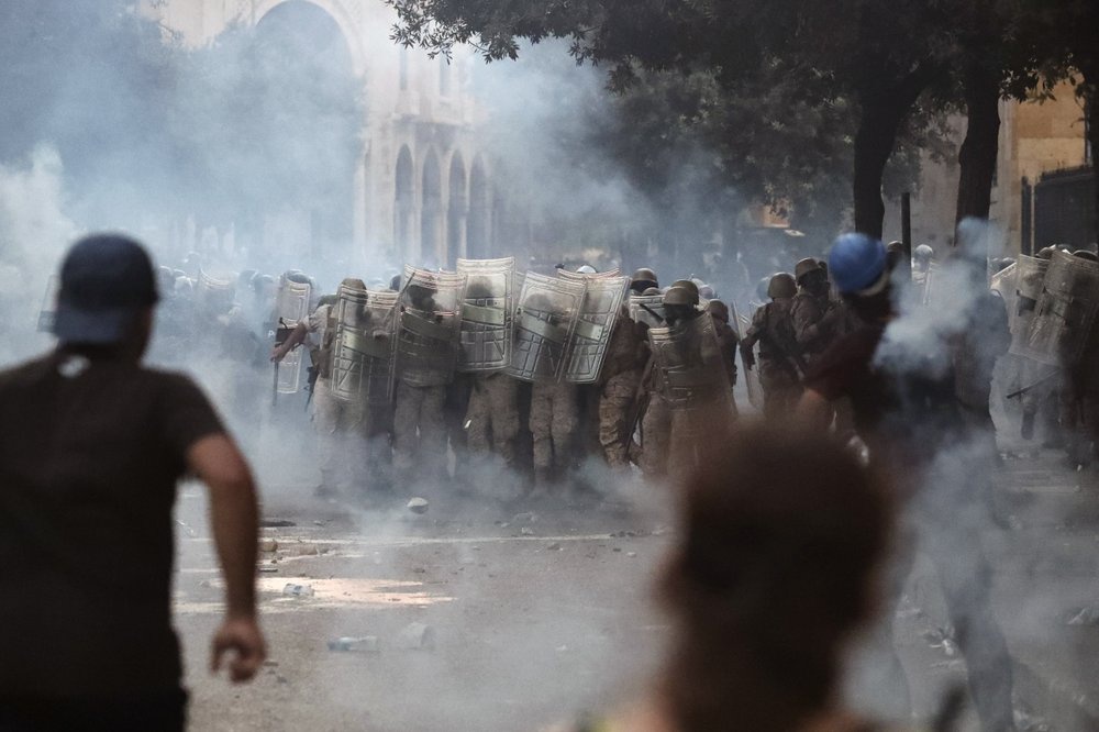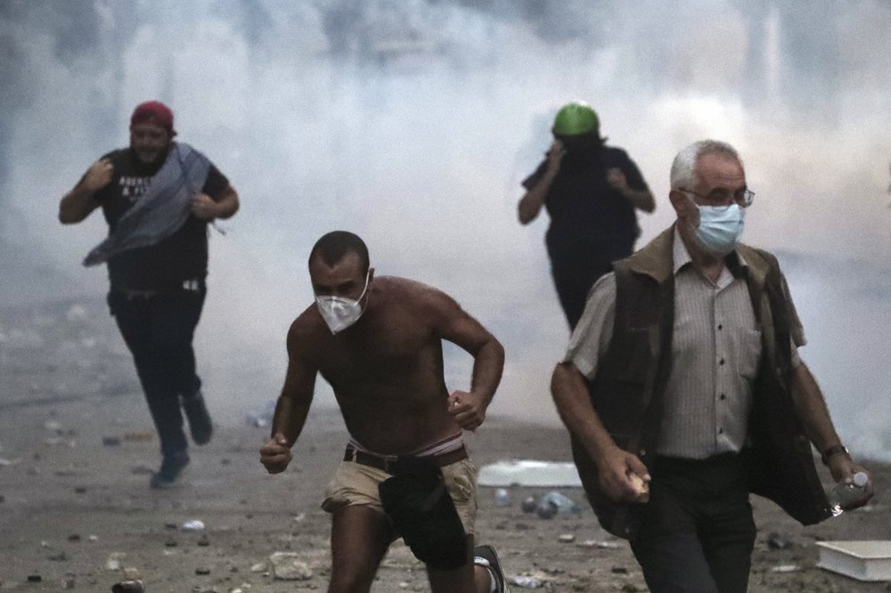 Biểu tình quy mô lớn bùng phát tại Beirut ngày 8/8, theo sau đó là bạo lực nghiêm trọng với nhiều vụ đụng độ giữa người dân và lực lượng an ninh. Tổ chức Chữ thập Đỏ Lebanon cho biết đã có hàng trăm người bị thương. Ít nhất một nhân viên an ninh tử vong vì đụng độ với người biểu tình. Ảnh: AP.