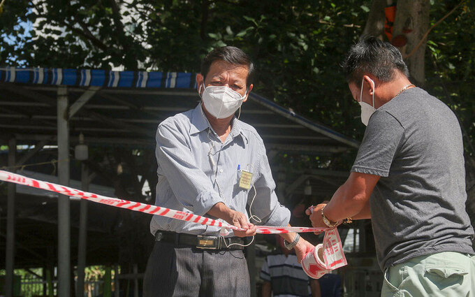 Tổ chống dịch căng dây kiểm soát khu vực dân cư có ca mắc nCoV ở quận Sơn Trà. Ảnh: Đông Nam