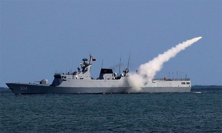 Hai khu trục hạm và một hộ vệ hạm của hải quân Trung Quốc tham gia huấn luyện bắn đạn thật đối phó tên lửa tại biển Hoa Đông.