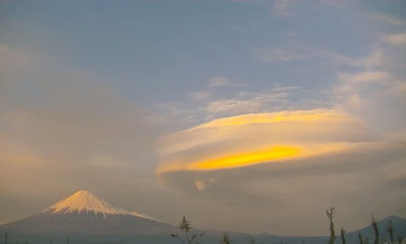 Vật thể bay không xác định (UFO) có thể đã cố gắng đi vào một căn cứ bí mật bên dưới ngọn núi lửa đang hoạt động này, một ''thợ săn'' UFO tuyên bố. Hình ảnh bất thường phía bên trên ngọn núi Phú Sĩ đã được nhân chứng quay lại vào tháng 2 năm nay. Ngay từ cái nhìn đầu tiên, video dường như cho thấy một đám mây dạng thấu kính do Mặt trời chiếu sáng vào. Nhưng nhà lý thuyết âm mưu cũng là người đam mê UFO, Scott C Waring, tin rằng đó là một phi thuyền của người ngoài hành tinh đang ẩn bên trong đám mây.