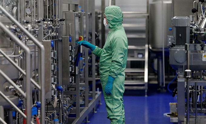 Kỹ thuật viên làm việc tại cơ sở sản xuất vaccine của hãng CanSino ở Thiên Tân, Trung Quốc, tháng 11/2018. Ảnh: Reuters.