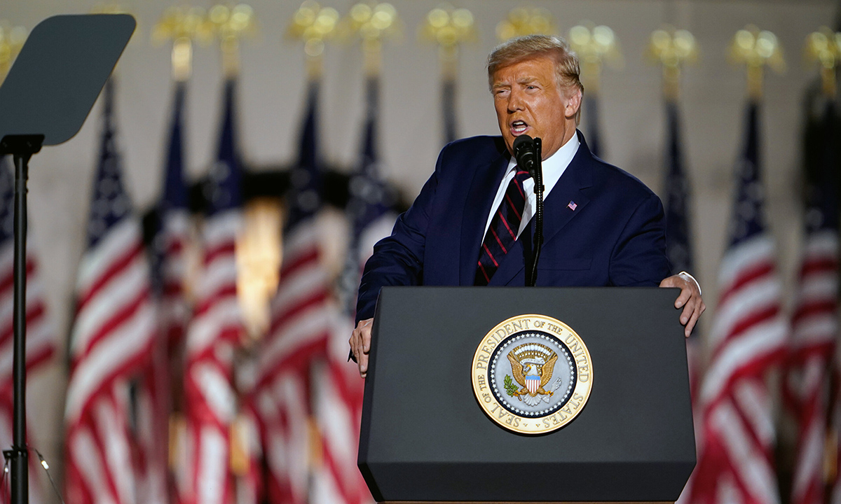 Tổng thống Donald Trump phát biểu tại Hội nghị Toàn quốc đảng Cộng hòa ở Nhà Trắng tối 27/8. Ảnh: NY Times.