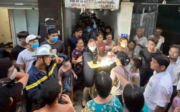 Người dân cùng chính quyền địa phương và lực lượng chức năng đã đục tường và giải cứu đưa cháu bé ra ngoài đi cấp cứu tại trung tâm Y tế thị trấn sau chuyển đến chăm sóc tích cực tại khoa Sơ sinh Bệnh viện Đa khoa Xanh Pôn.