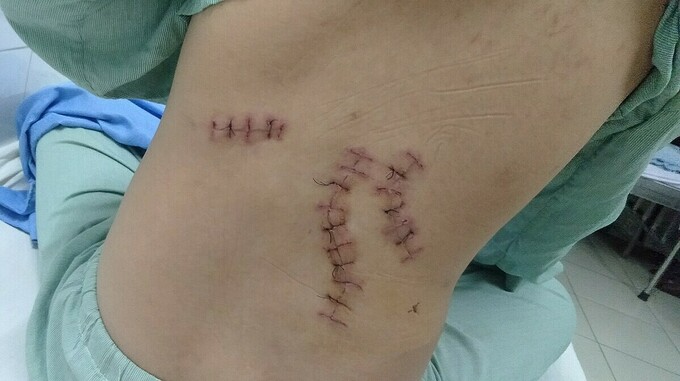 Nguyễn Văn Nam, 27 tuổi tỉnh dậy sau 15 giờ hôn mê ở bệnh viện mới biết mình chỉ còn một quả thận, được bác sĩ cứu sống sau 5 nhát đâm hiểm ác của tên cướp.