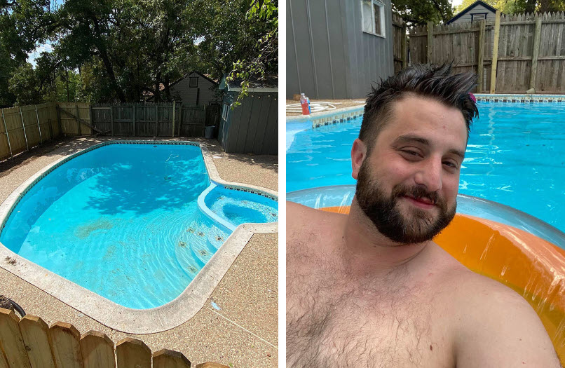 Sau một hồi dọn dẹp hết rác rưởi, đất đá bên trong, rồi đầu tư thêm 10.000 USD để cải tạo trong thời gian 18 tháng, giờ đây Reynolds có một chiếc hồ bơi thực sự "chill".