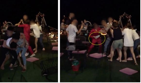 Người vợ cùng nhóm phụ nữ đi cùng mình (khoảng 3-4 người) đã không ngần ngại lao vào cô bồ nhí để mắng chửi và đánh tát rất mạnh tay. Nhóm phụ nữ này cùng lúc đấm đá, tát, giật tóc, lên gối, thúc cùi chỏ,... thậm chí còn rút dép để tát bôm bốp vào mặt cô gái trẻ. Khi gã chồng lên tiếng can ngăn, giảng hoà thì cũng bị vợ dùng dép đánh vào mặt một cái.