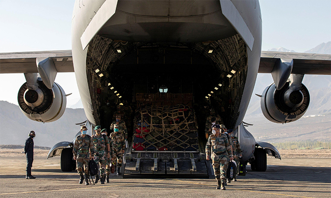 Vận tải cơ Ấn Độ đỗ tại một căn cứ không quân ở Leh, vùng Ladakh, ngày 15/9. Ảnh: Reuters.