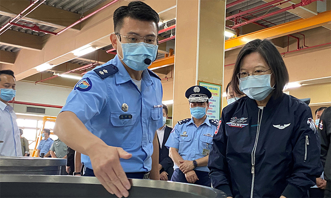 Trong chuyến thăm căn cứ phòng vệ trên không Cương Sơn, phía nam thành phố Cao Hùng, lãnh đạo Thái Anh Văn nhận được báo cáo chi tiết về hoạt động bảo trì chiến đấu cơ F-16 và các loại tiêm kích khác. Số máy bay quân sự này đang phải hoạt động ở tần suất cao nhất trong những tháng qua.