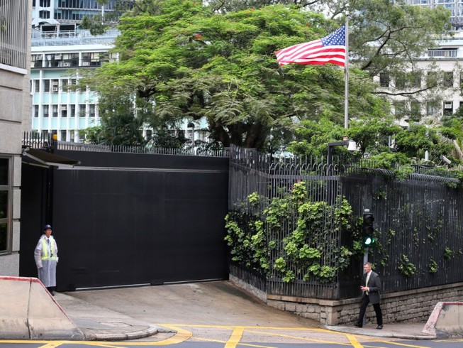 Ảnh chụp bên ngoài trụ sở Lãnh sự quán Mỹ tại Hong Kong hồi tháng 8-2019. Ảnh: SCMP