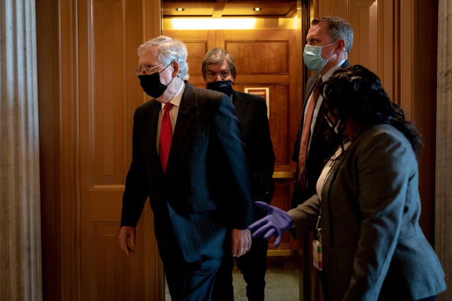Thượng nghị sĩ Mitch McConnell, Lãnh đạo Phe đa số Thượng viện, từ chối bình luận về chuyện đóng thuế của ông Trump. Ảnh: New York Times.
