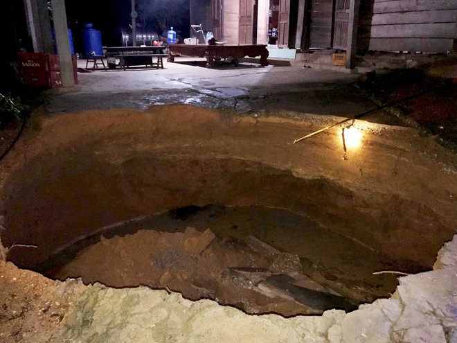 Hố sụt đường kính hơn 4 m bất ngờ xuất hiện trước sân nhà, gia đình chị Vân phải di dời đi nơi khác để đảm bảo an toàn.