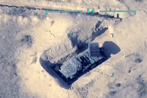 Hình ảnh từ đoạn video cho thấy xe tăng và một số phương tiện quân sự khác của Armenia bị phá hủy trong cuộc không kích. Cột khói lớn được nhìn thấy bốc lên từ hiện trường vụ tấn công.