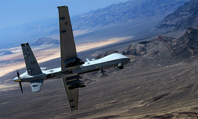 MQ-9 là UAV đầu tiên hoạt động liên tục hơn 40 tiếng, với sải cánh 24 m và 7 giá treo vũ khí, cho phép mang tới 4 tên lửa đối đất AGM-114 và hai bom dẫn đường laser GBU-12 hoặc bom thông thường GBU-38. Mỹ từng sử dụng MQ-9 trong cuộc không kích hạ sát thiếu tướng Qassem Soleimani, chỉ huy đặc nhiệm Iran, hồi tháng 1.