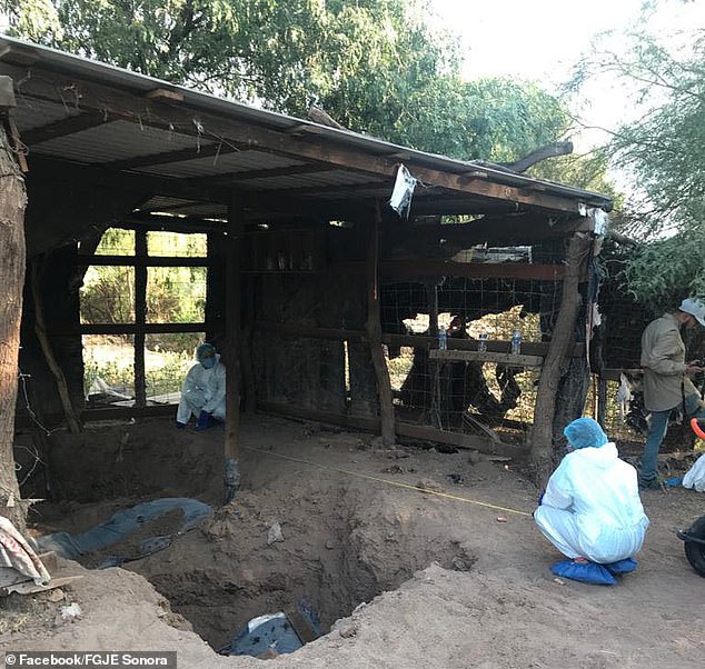 Hố chôn tập thể có 7 xác chết. Ảnh: FGJE Sonora