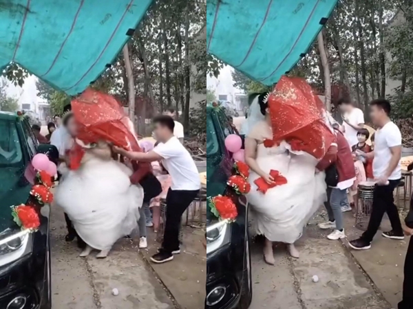 Hình ảnh trong một clip cho thấy cô dâu đang nắm tay chú rể bước ra từ xe hoa và chuẩn bị đi vào nhà, thì bất ngờ có một nam thanh niên được cho là bạn của chú rể tiếp tục đùa dai, lấy tay lật chiếc ô mà cô dâu đang che mặt để xịt tiếp. Sau 2-3 lần che mặt né tránh, khiến đôi khi những trò đùa trong đám cưới chẳng những không làm cô dâu chú rể vui vẻ mà còn phá hỏng cả một ngày trọng đại.