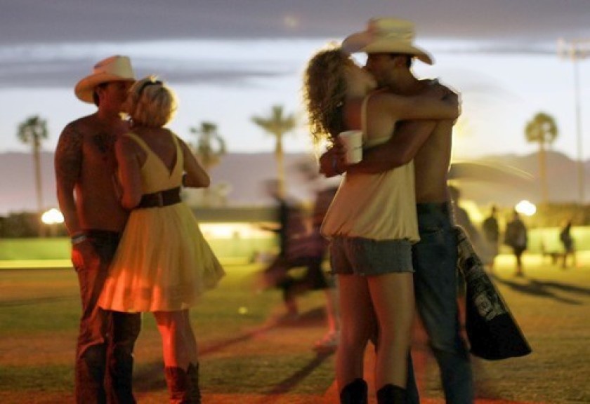 Các đôi trao nhau nụ hôn tại lễ hội âm nhạc Stagecoach. Theo một nghiên cứu mới, kể từ năm 2000, người Mỹ trong độ tuổi 18-44 có xu hướng không quan hệ tình dục trong một năm hoặc hơn. Ảnh: Los Angeles Times.Giới trẻ Mỹ ít sex hơn bao giờ hết