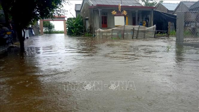Nhiều nhà dân ở xã Quảng Thái, huyện Quảng Điền, tỉnh Thừa Thiên - Huế bị ngập sâu. Ảnh: TTXVN phát