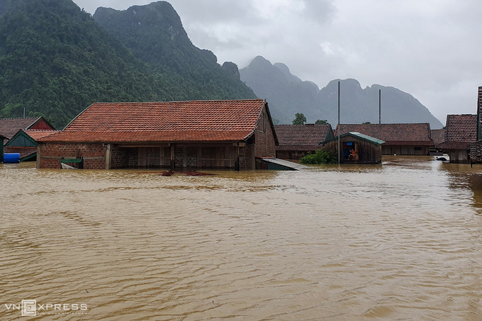 Hàng trăm ngôi nhà ở huyện Minh Hóa, tỉnh Quảng Bình chìm trong nước lũ ngày 9/10. Ảnh: Đức Hùng.
