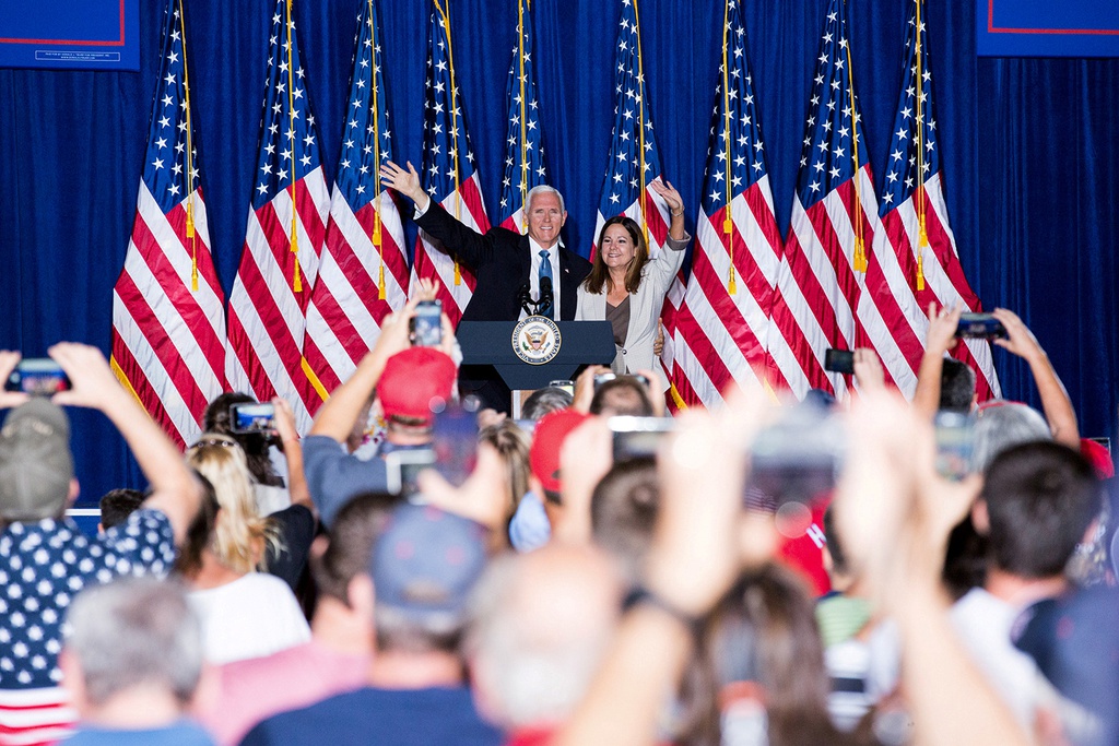 Phó tổng thống Mike Pence phát biểu tại Lititz, Pennsylvania sau khi cùng cử tri theo dõi cuộc tranh luận tổng thống ngày 29/9. Ảnh: Reuters.