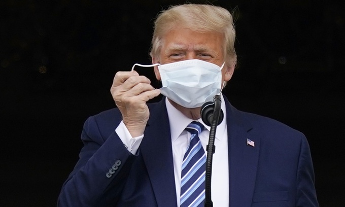 "Hôm qua, các bác sĩ Nhà Trắng đã phê chuẩn toàn bộ và đầy đủ. Như vậy đồng nghĩa tôi không thể nhiễm virus (miễn dịch) và không thể lây truyền nó. Rất tốt khi biết điều này!!!", Tổng thống Donald Trump ngày 11/10 viết trên mạng xã hội Twitter.