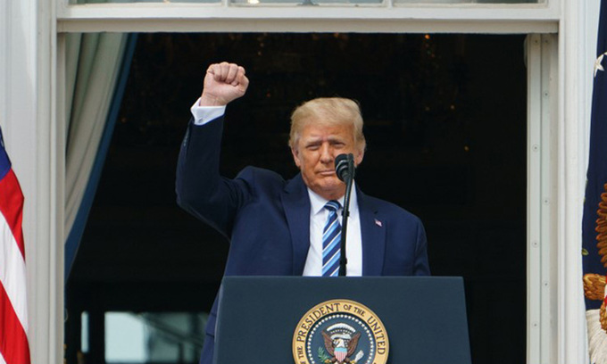 Tổng thống Mỹ Donald Trump phát biểu trước người ủng hộ từ ban công Nhà Trắng hôm 10/10. Ảnh: AFP.