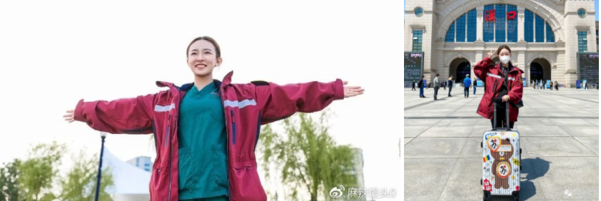 Yu Xinhui được dân mạng gán biệt danh "nữ y tá xinh đẹp nhất Trung Quốc" sau các bức ảnh cô đến Vũ Hán vào thời điểm dịch bệnh bùng phát. Ảnh: Weibo.