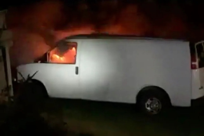 Xe tải của một ngư dân bản địa bị phóng hỏa đêm 13/10 trong cuộc biểu tình bạo lực ở New Edinburgh. Ảnh: CBC.