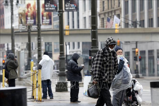 Người dân đeo khẩu trang phòng lây nhiễm COVID-19 tại Detroit, Michigan, Mỹ, ngày 7/4/2020. Ảnh: AFP/TTXVN