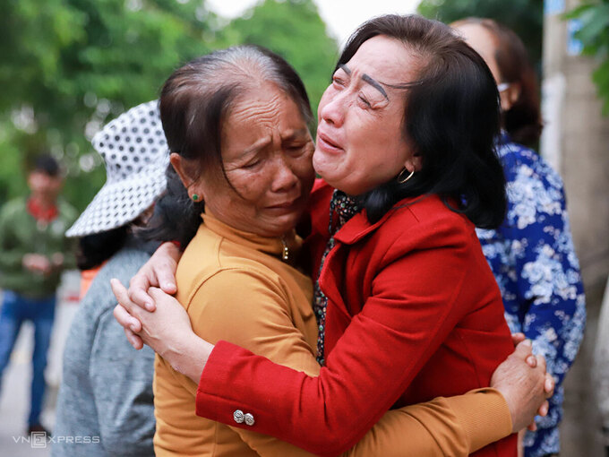 Đứng chờ vào nhận thi thể con trai Lê Thế Linh, bà Lương Thị Lư khóc thành tiếng, vin vai người thân để không ngă. Hơn chục phụ nữ là người thân, hàng xóm, hai ngày qua cùng chạy đôn chạy đáo với bà Lư. Hết t́m đường lên hiện trường thôn Cợp xă Hướng Phùng, huyện Hướng Hoá nhưng bị ngăn lại v́ đang sạt lở và cứu hộ, họ lại kéo nhau đến Nhà thi đấu đa năng TP Đông Hà khi biết tin các thi thể được đưa về đây.