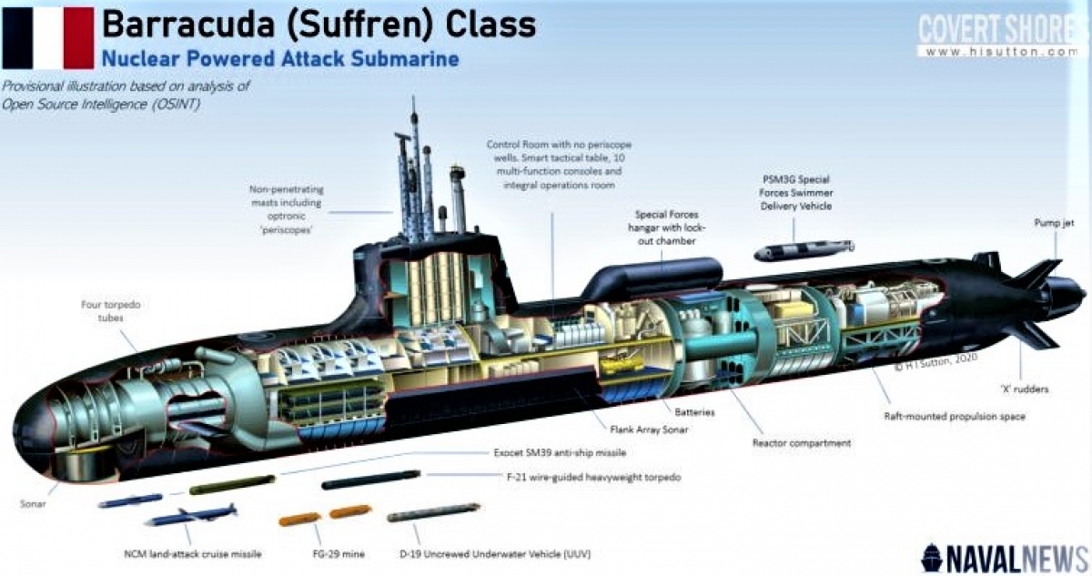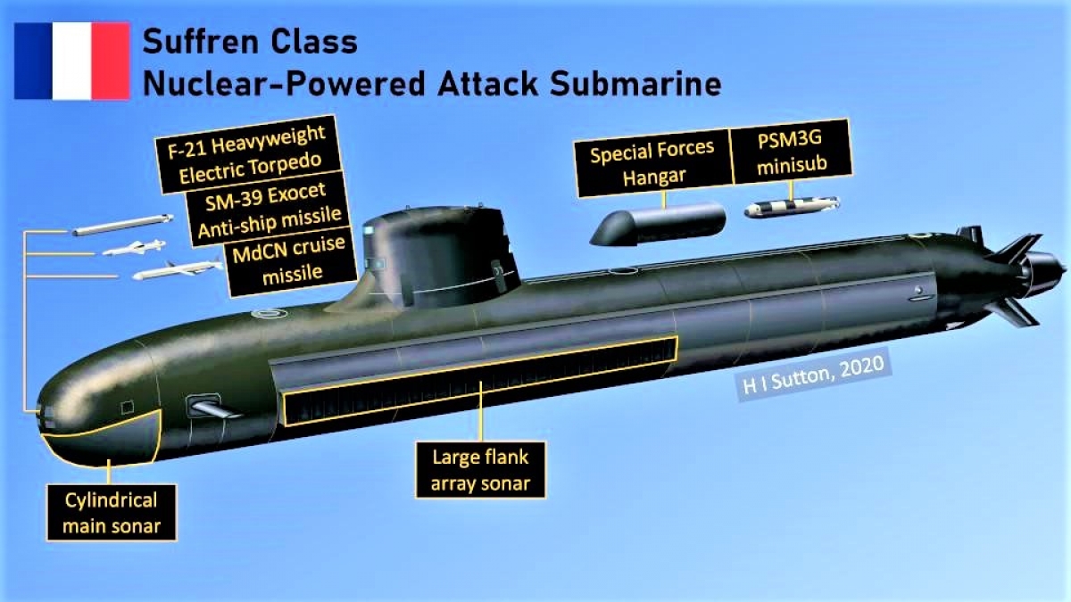 Tàu ngầm tấn công lớp Suffren - "Viên ngọc công nghệ" làm thay đổi cuộc chơi. Đây là một cải tiến trên cơ sở lớp Ruby với nhiều tính năng vượt trội và có thể thực hiện nhiều nhiệm vụ hơn.