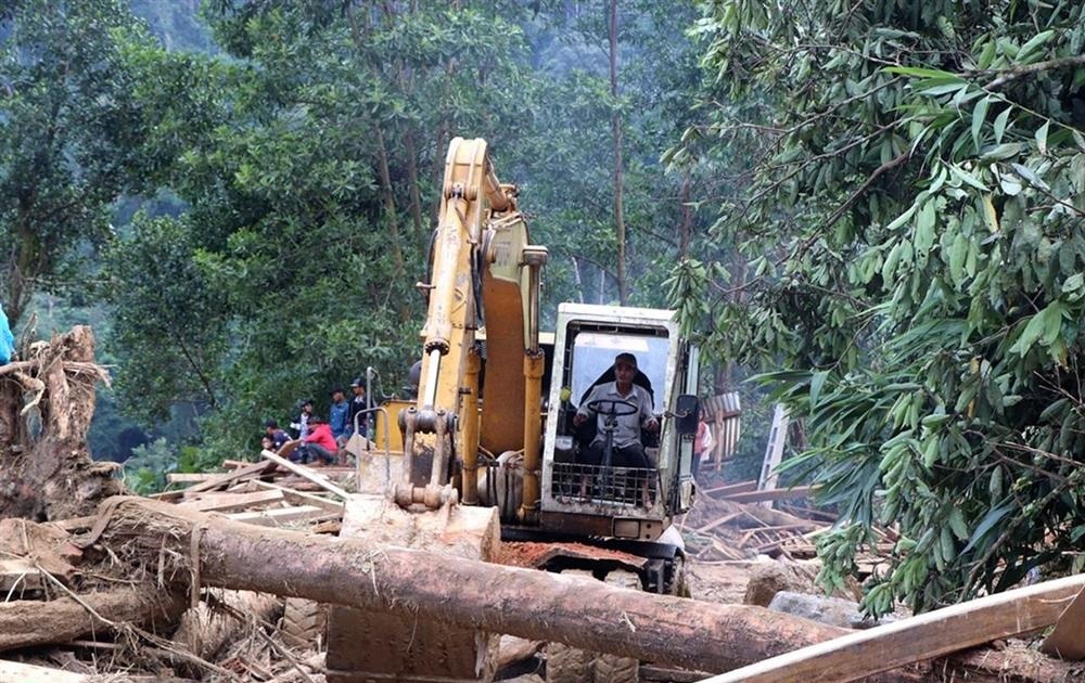 Nhiều máy xúc của lực lượng chức năng và các công trường xung quanh được huy động để tìm kiếm các nạn nhân mất tích.