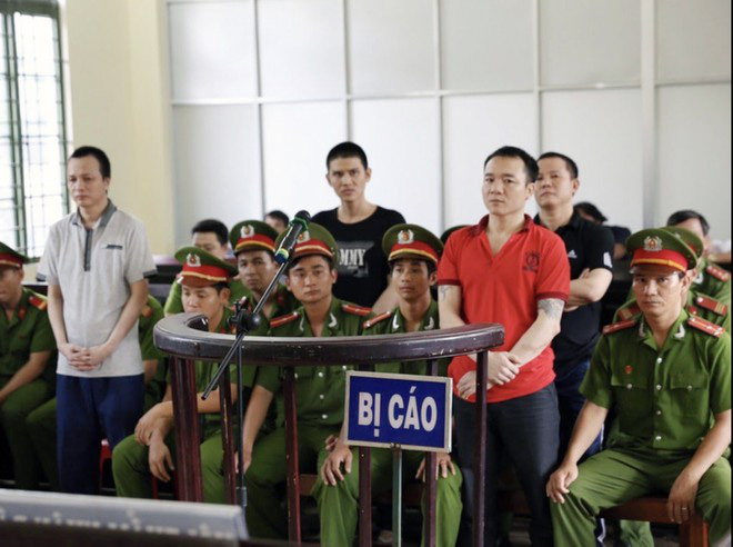 Nguyễn Trọng Mười (áo đỏ) tại phiên tòa xét xử năm 2015).
